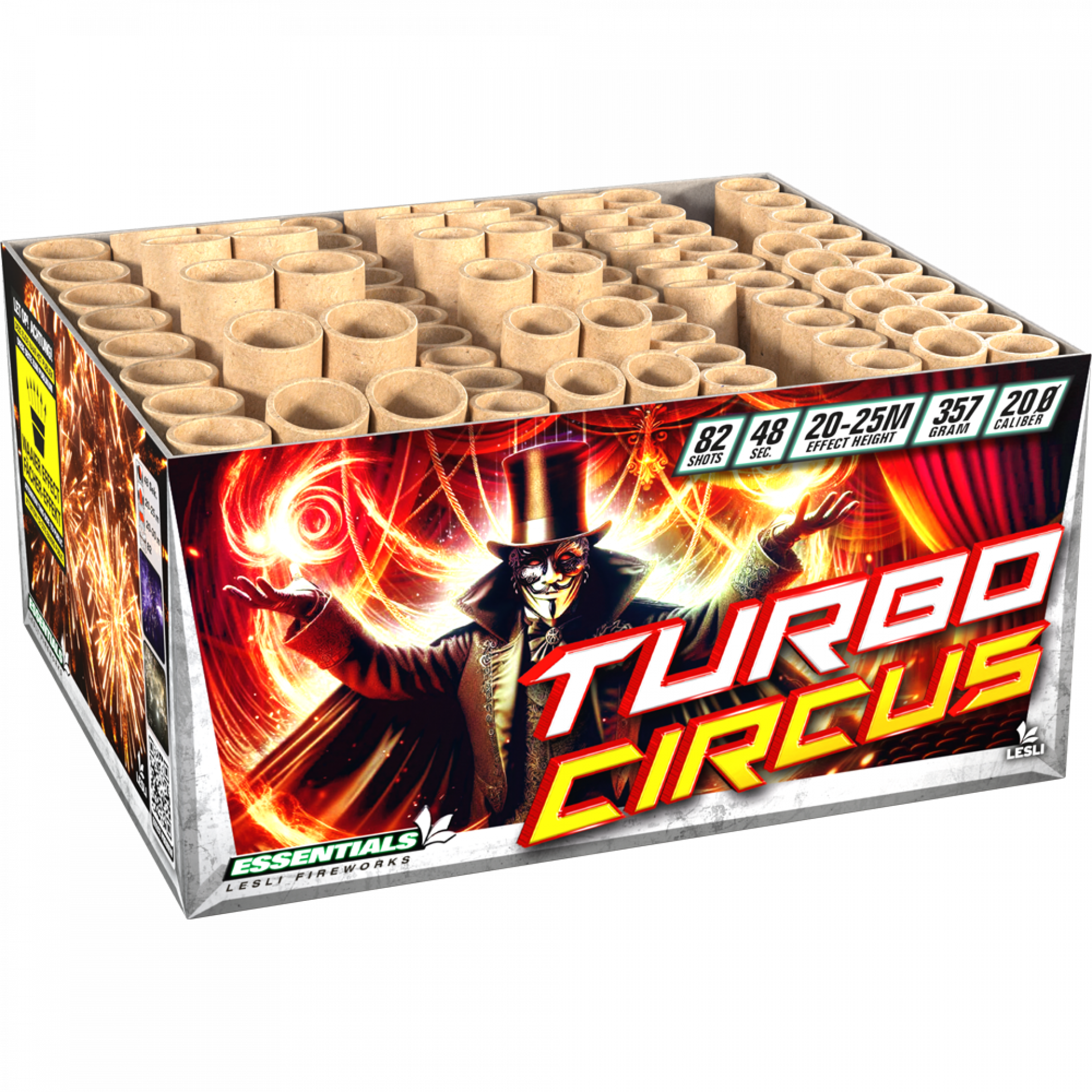 Een bizarre cocktail van 82 effecten vult de lucht! Rood, groen, wit, paars, crackling en brocades - niet te lang nadenken, anders is het al voorbij! Geschoten in waaiervorm, met een spectaculaire finale dat de hemel volledig vult.